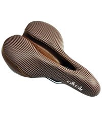 Altair Comfort Airflow - large profile saddle with air flow channel that diverts air from below the seat and up through the open cut out in the base, classy brown weaved texture cover, ergonomic zone cut, high density and light foam, D2 base, ArcTech suspension, steel rails, 268x173mm, 422g. Read more...