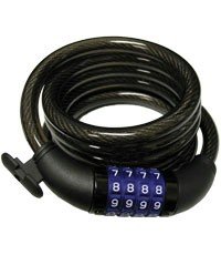 Ikon C5000 - 6'x12mm heavy duty coiled cable, thick vinyl coating, quick release mounting bracket, four digit set your own combination lock, black. Read more...