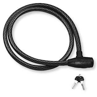 This tempered steel cable lock features a smooth vinyl cover and a soft molded lock head to protect the frame and wheel from scratches. The braided and twisted cable offers improved cut resistance, and the integrated lock features a snap-shut cylinder with quarter-turn key movement. Orange highlights improve visibility for added theft deterrence. Kit includes 2 blade-style keys. "Key Safe" registration and replacement service is available. Cable length: 6.0'. Universal. Read more...